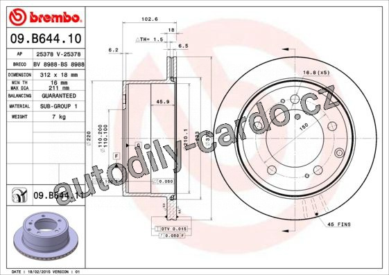 Brzdový kotouč BREMBO 09.B644.10 - TOYOTA