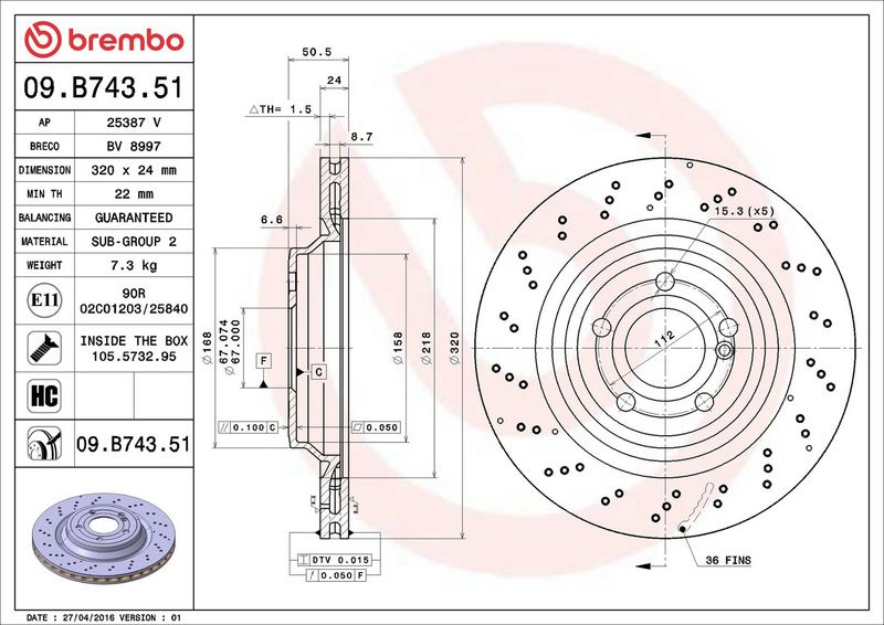 Brzdový kotouč BREMBO 09.B743.51 - MERCEDES-BENZ