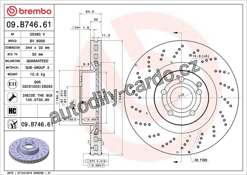 | Typ brzdového kotouče: | děrováno / vnitřně větráno |