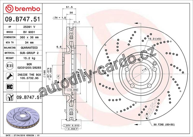 Brzdový kotouč BREMBO 09.B747.51 - MERCEDES-BENZ