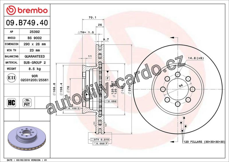 Brzdový kotouč BREMBO 09.B749.40 - MERCEDES-BENZ