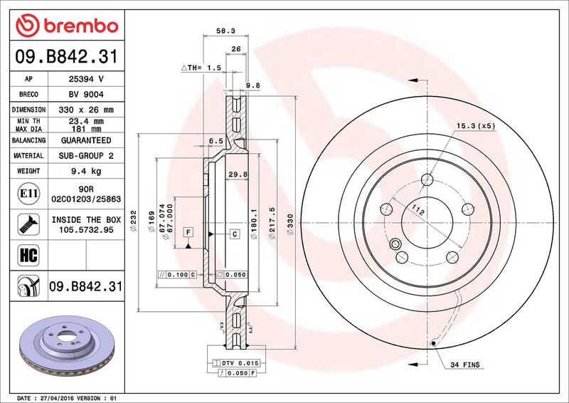 Brzdový kotouč BREMBO 09.B842.31 - MERCEDES-BENZ