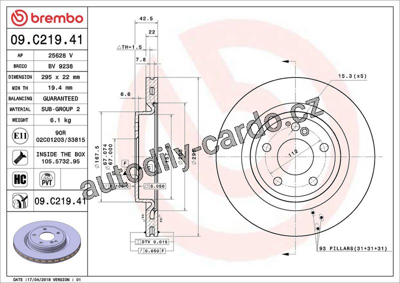 Brzdový kotouč BREMBO 09.C219.41 - MERCEDES-BENZ
