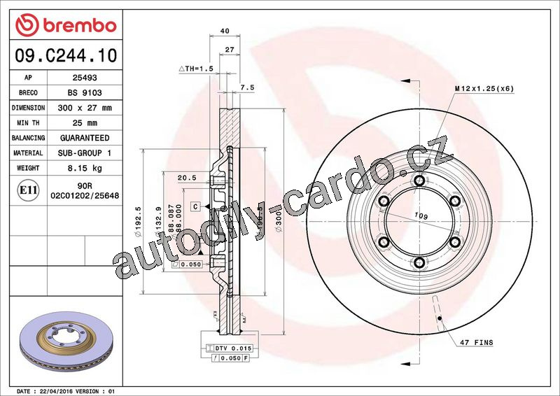 Brzdový kotouč BREMBO 09.C244.10 - ISUZU