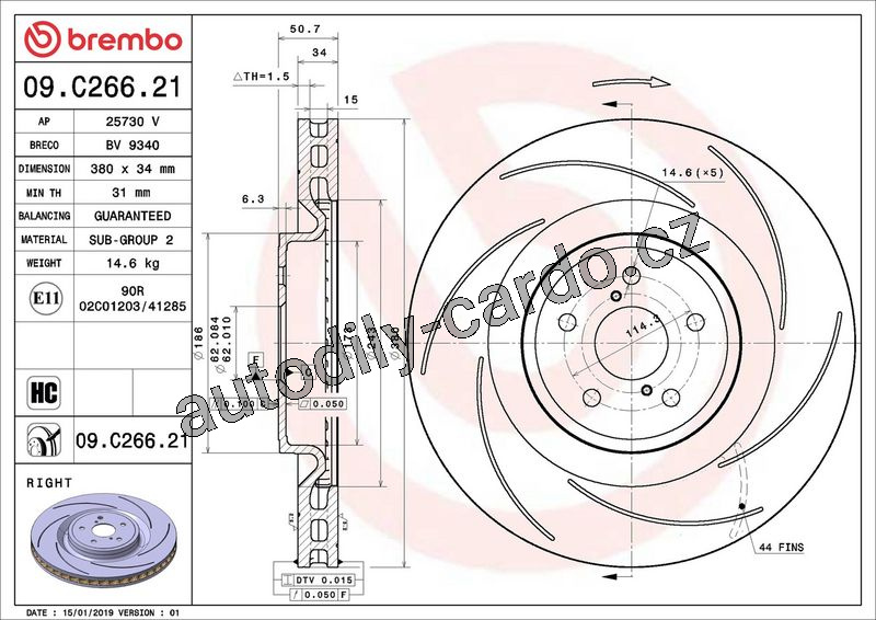Brzdový kotouč BREMBO 09.C266.21 - LEXUS