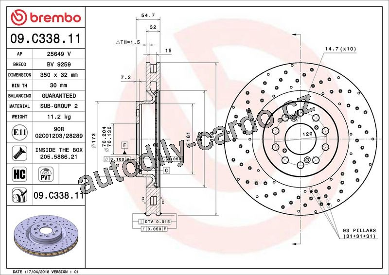 | Typ brzdového kotouče: | děrováno / vnitřně větráno |