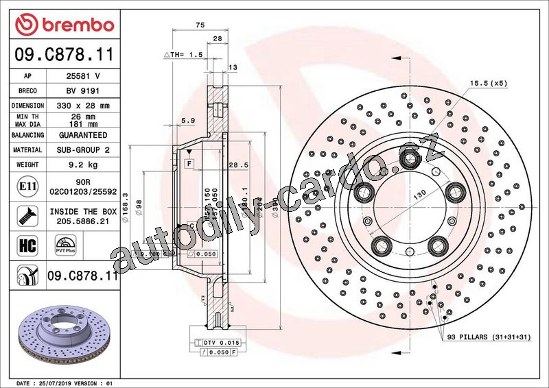 Brzdový kotouč BREMBO 09.C878.11 - PORSCHE