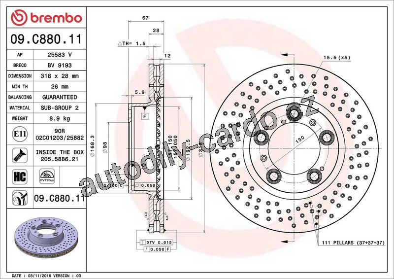 Brzdový kotouč BREMBO 09.C880.11 - PORSCHE