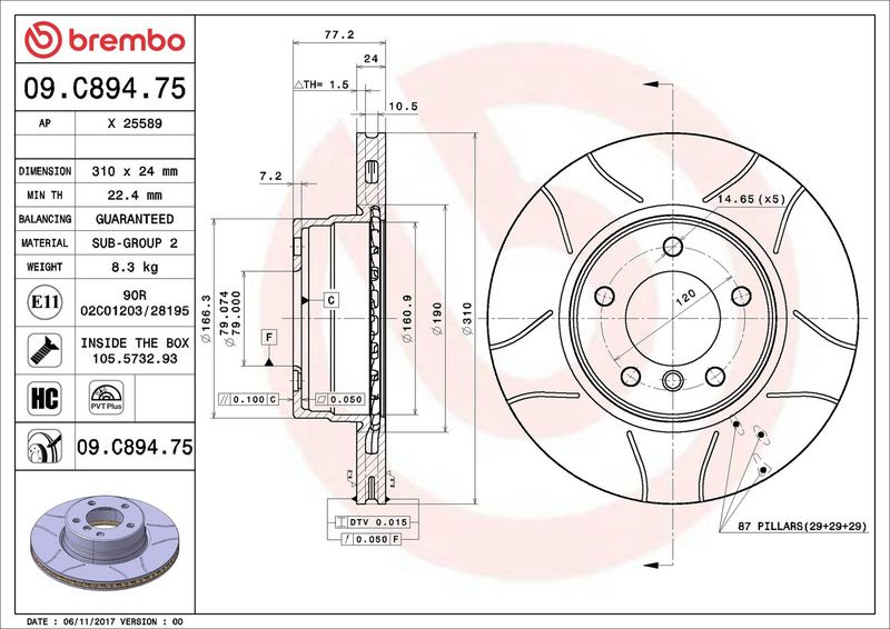 Brzdový kotouč BREMBO 09.C894.75 - BMW