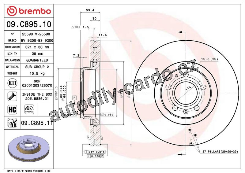 Brzdový kotouč BREMBO 09.C895.11 - AUDI