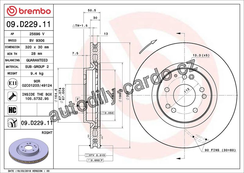 | Typ brzdového kotouče: | vnitřně větráno |