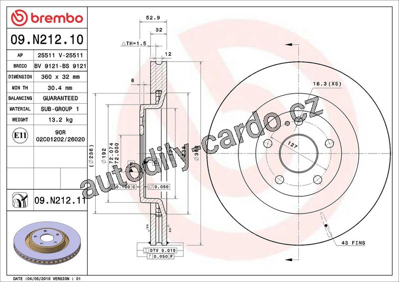 | Síla brzdového kotouče [mm]: | 32 |