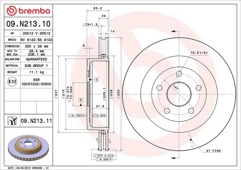 Brzdový kotouč BREMBO 09.N213.11 - JEEP
