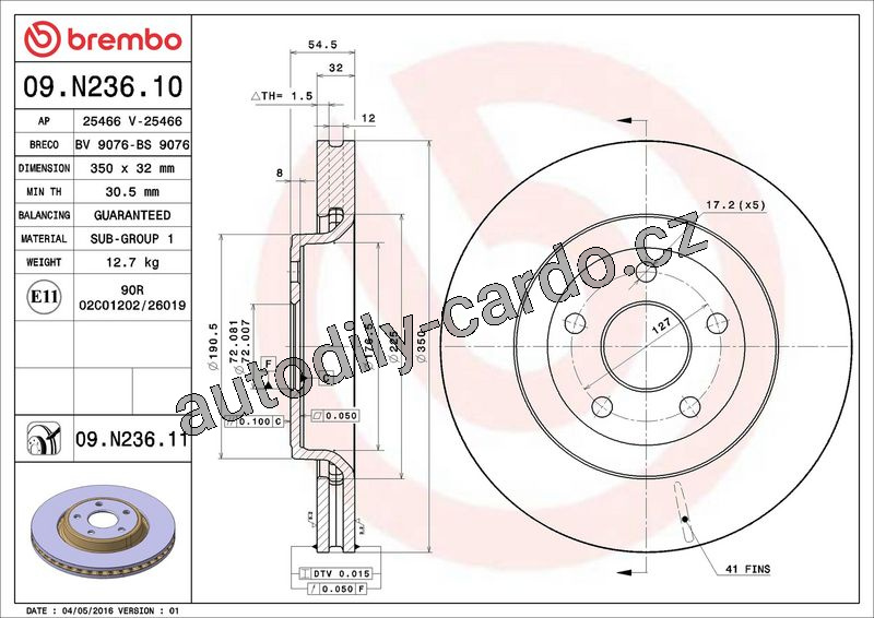 Brzdový kotouč BREMBO 09.N236.11 - JEEP