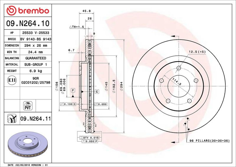 Brzdový kotouč BREMBO 09.N264.11 - CITROËN, MITSUBISHI, PEUGEOT