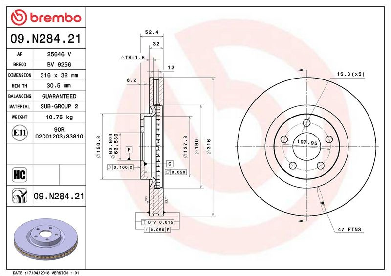 Brzdový kotouč BREMBO 09.N284.21 - FORD