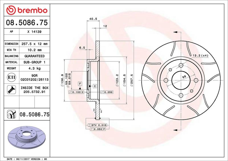 Brzdový kotouč BREMBO MAX 08.5086.75 - FIAT, LANCIA