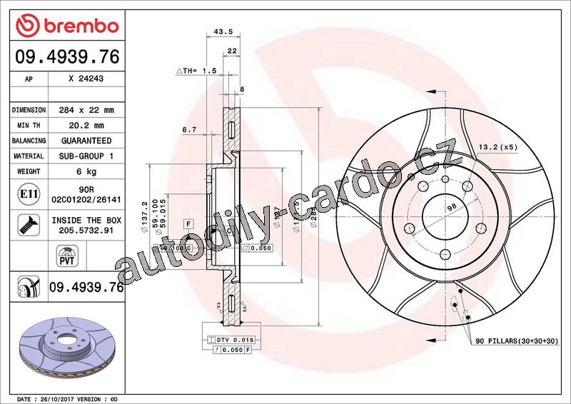 Brzdový kotouč BREMBO MAX 09.4939.76 - ALFA ROMEO, FIAT