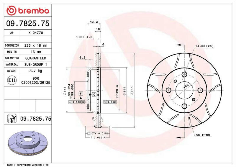 Brzdový kotouč BREMBO MAX 09.7825.75 - TOYOTA