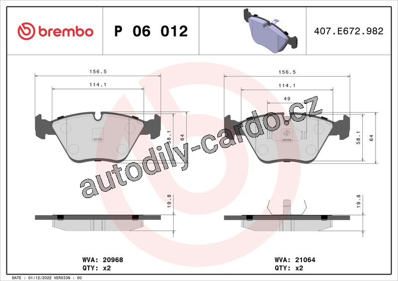 Sada brzdových destiček BREMBO P06012 - BMW