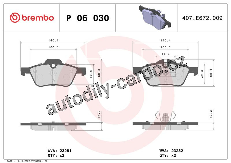 Sada brzdových destiček BREMBO P06030 - MINI