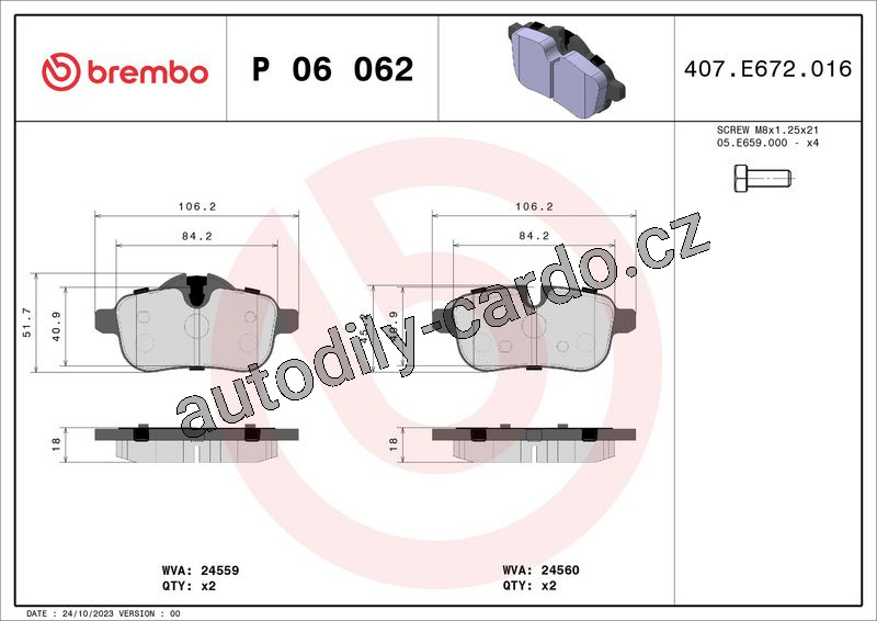 Sada brzdových destiček BREMBO P06062 - BMW