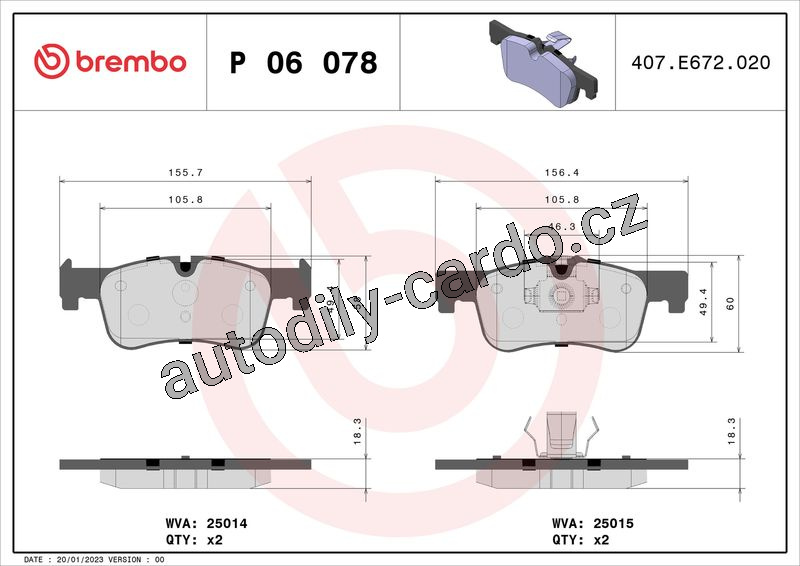 Sada brzdových destiček BREMBO P06078 - BMW