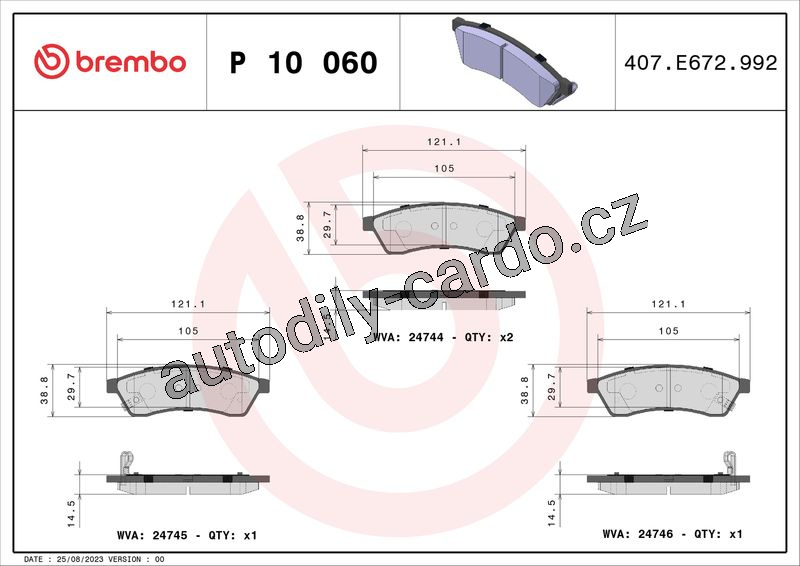 Sada brzdových destiček BREMBO P10060C - CHEVROLET