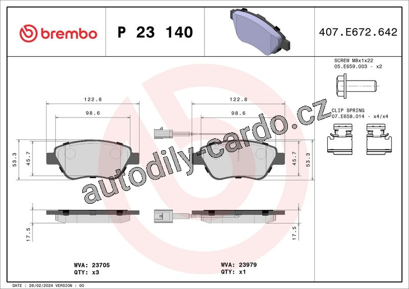 Sada brzdových destiček BREMBO P23140 - CITROËN, FIAT, PEUGEOT