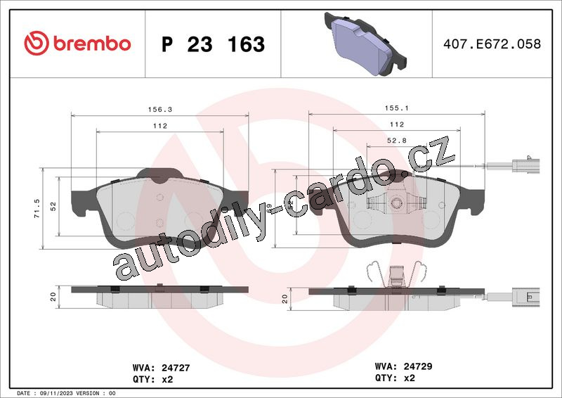 Sada brzdových destiček BREMBO P23163 - FIAT, LANCIA, OPEL