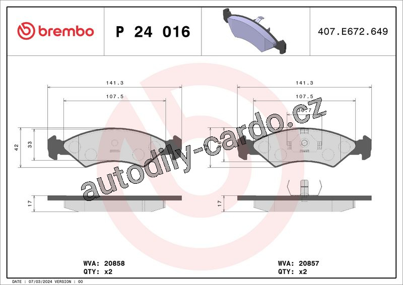 Sada brzdových destiček BREMBO P24016 - FORD