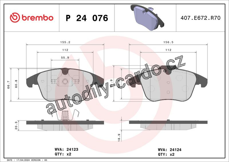 Sada brzdových destiček BREMBO P24076X - FORD, LAND ROVER, VOLVO