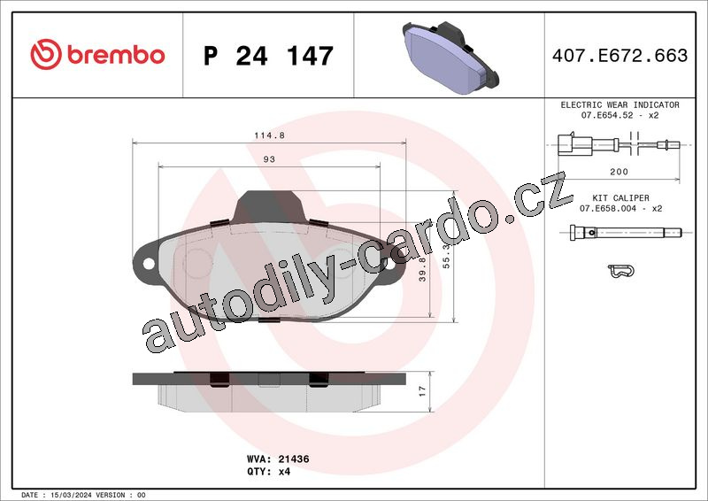 Sada brzdových destiček BREMBO P24147 - FIAT, FORD