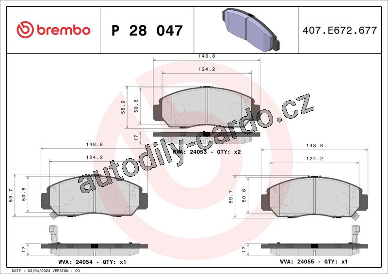 Sada brzdových destiček BREMBO P28047 - HONDA