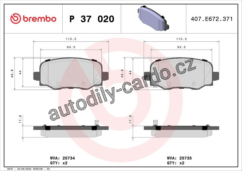 Sada brzdových destiček BREMBO P37020 - JEEP