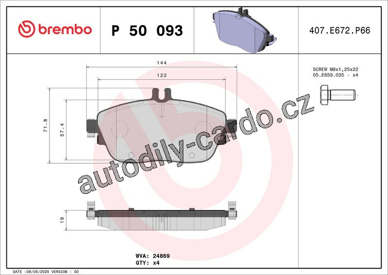 Sada brzdových destiček BREMBO P50093X - INFINITI, MERCEDES-BENZ