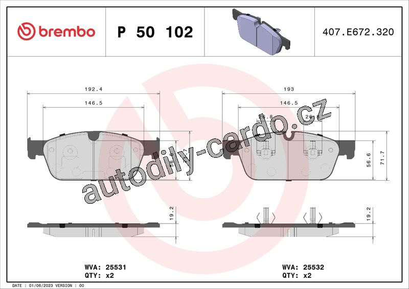 Sada brzdových destiček BREMBO P50102 - MERCEDES-BENZ
