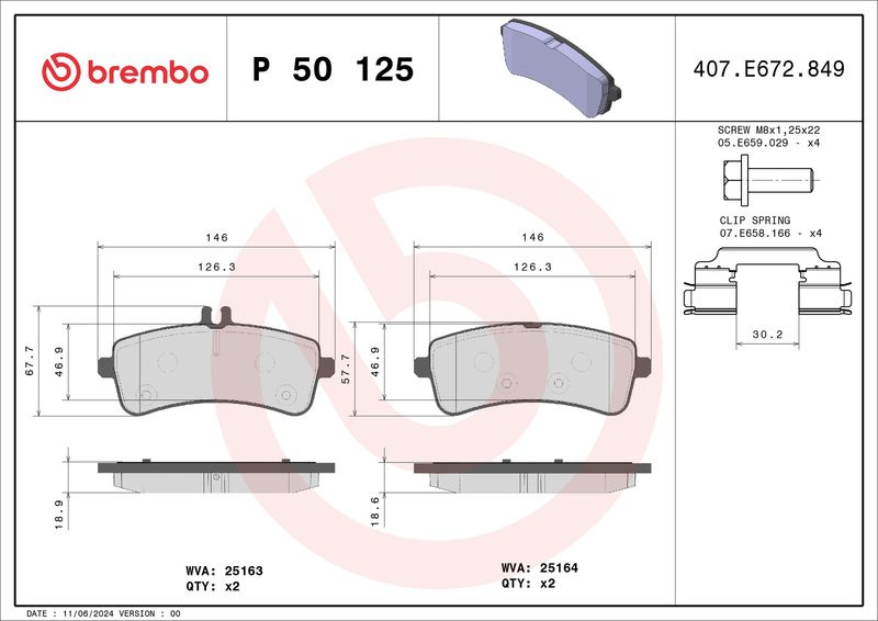 Sada brzdových destiček BREMBO P50125 - MERCEDES-BENZ