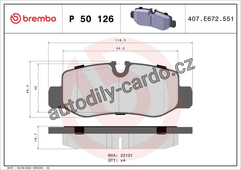 Sada brzdových destiček BREMBO P50126 - MERCEDES-BENZ