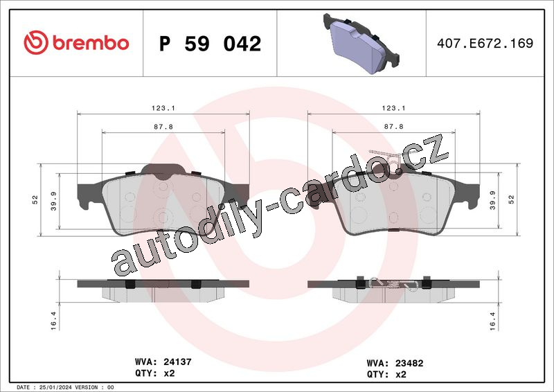 Sada brzdových destiček BREMBO P59042