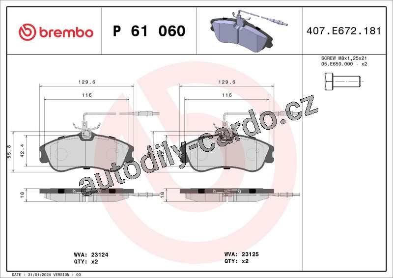 Sada brzdových destiček BREMBO P61060 - CITROËN, PEUGEOT
