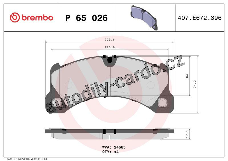 Sada brzdových destiček BREMBO P65026 - PORSCHE