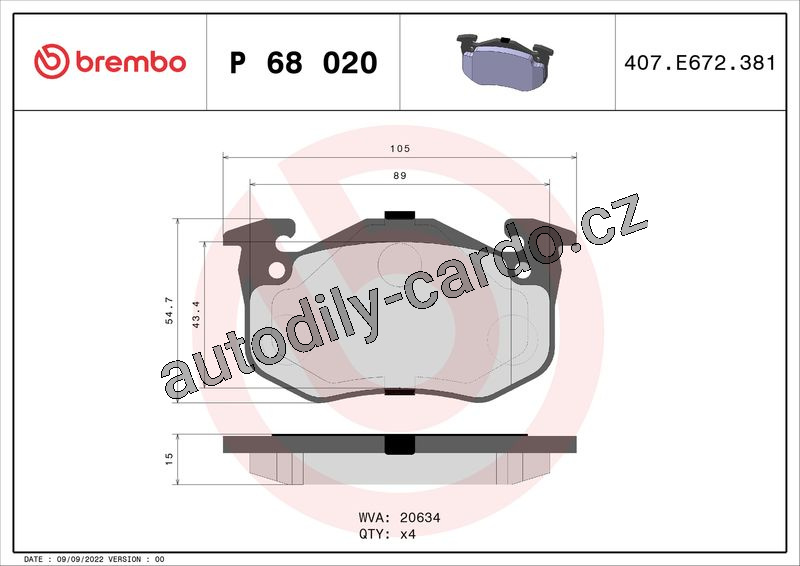 Sada brzdových destiček BREMBO P68020 - RENAULT