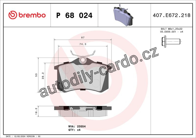 Sada brzdových destiček BREMBO P68024 - NISSAN, RENAULT