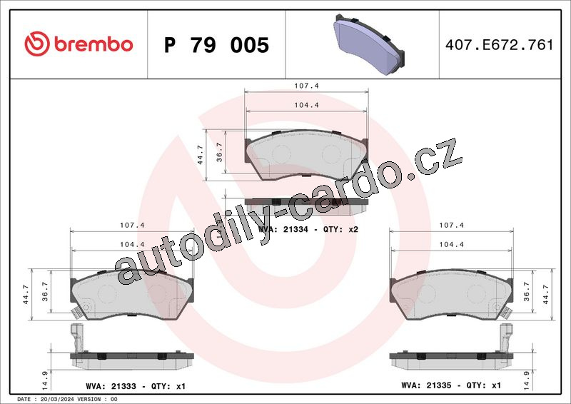 Sada brzdových destiček BREMBO P79005 - SUZUKI