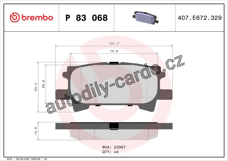 Sada brzdových destiček BREMBO P83068 - LEXUS