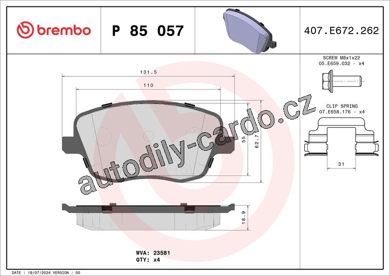 Sada brzdových destiček BREMBO P85057 - SEAT, ŠKODA, VW