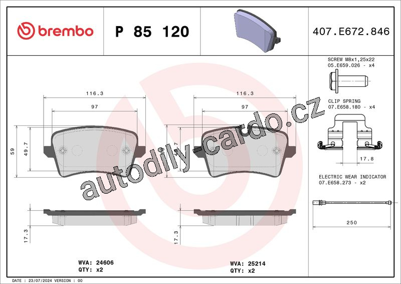 Sada brzdových destiček BREMBO P85120 - AUDI