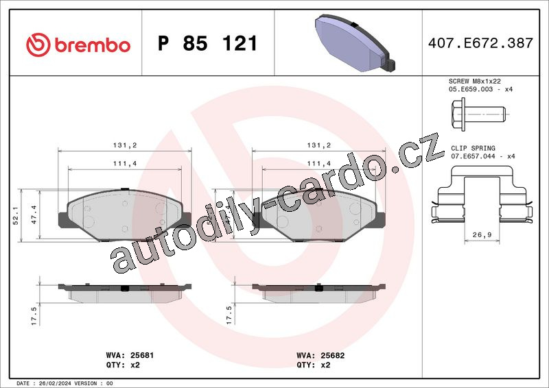 Sada brzdových destiček BREMBO P85121 - ŠKODA