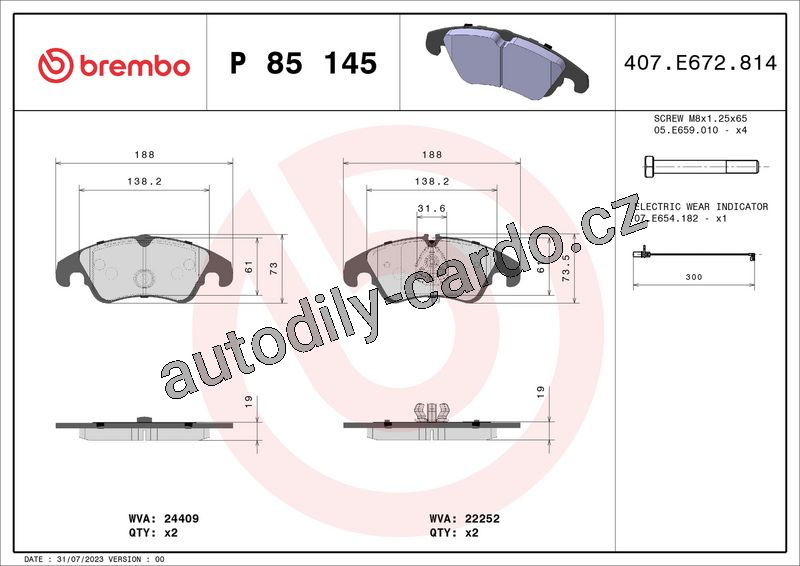 Sada brzdových destiček BREMBO P85145 - AUDI